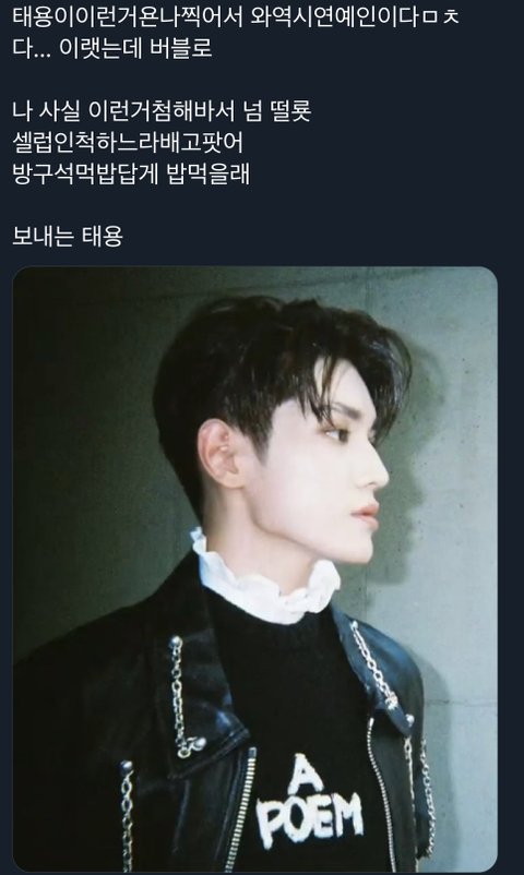 ㅠㅠ 밖에서 일하고 버블로 팬들한테 사실 떨렸엉 하는것듀 ㅠㅠ 밥은 마싯게 먹었냐 태용아