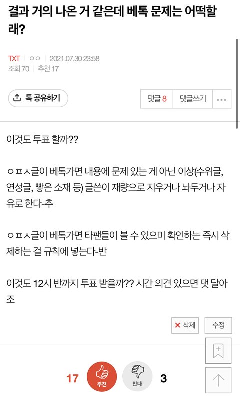 글 내용에 문제 있는것만 아니면 쓰니가 알아서 선택하기!