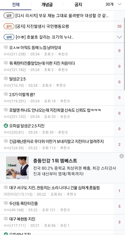 대구지진 규모 5.2래