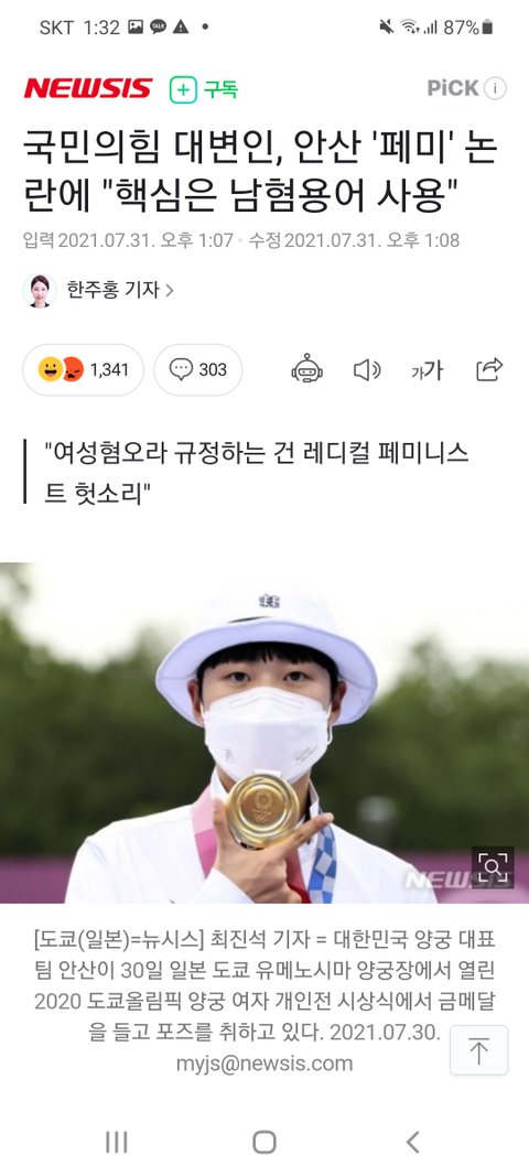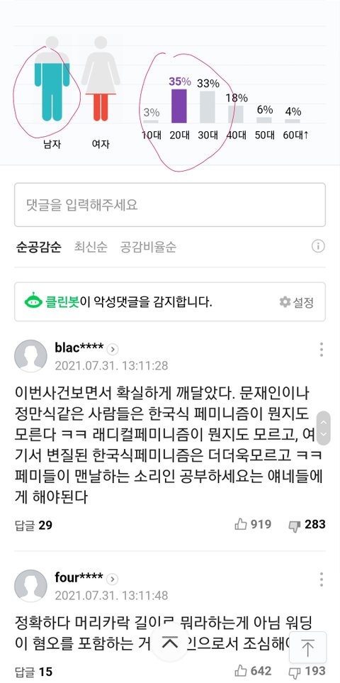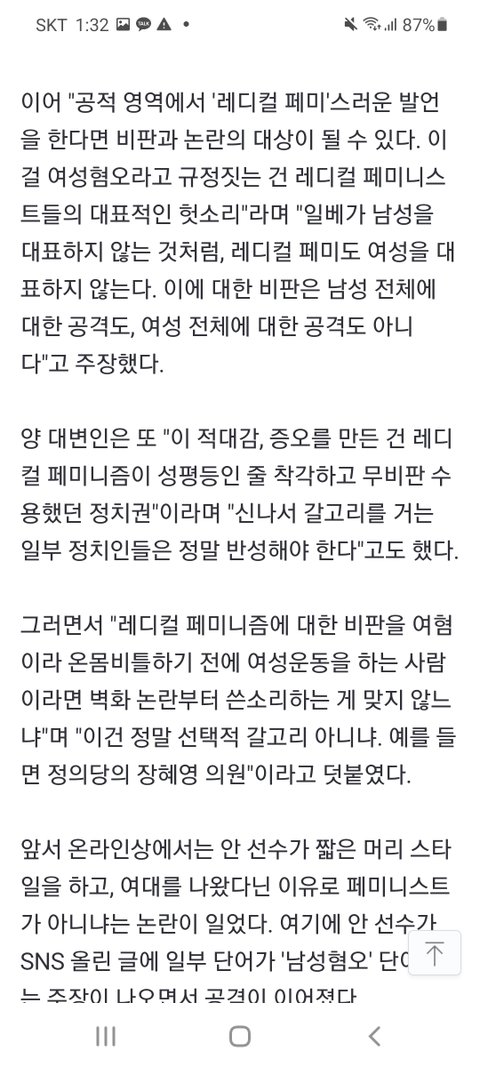 1. '안산 페미니즘' 논란을 지지하고,