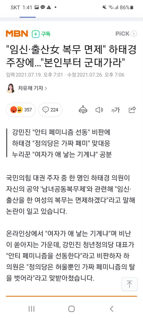 심지어 뭐라는 줄 알아?? 출산한 여성은 군면제래 ㅋㅋ 애 안낳을거면 군대가라는 소리인지? 여자가 애 낳는 기계야?