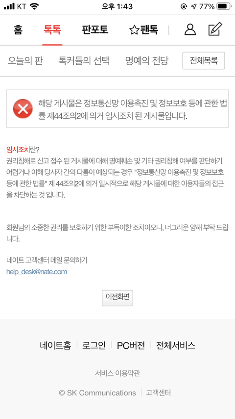 혹시 글 신고사유가 내기분상해죄 인가요?