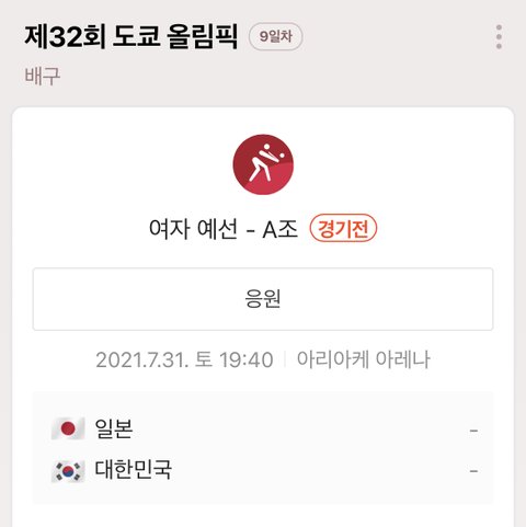 오늘 저녁 7시 40분에 "도쿄 올림픽 배구 한일전"이 있어!!!