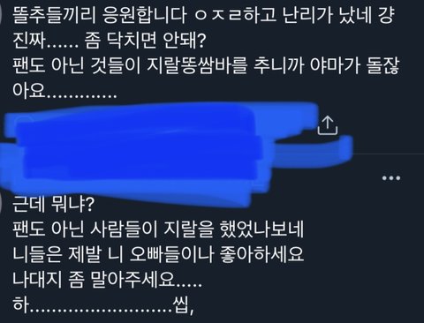 쓰는건데 이 트윗 ㅅㅌㅇㅆ 팬이 쓴거임 저쪽 팬들도 뭐라 안하는데 갤련들이 끌고오는거니까 제발 그냥 먹금해 악개니 뭐니 그런 얘기 없으니까