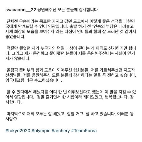 안산선수 인스타 게시물 페북에서 올라왔는데 페북 댓글