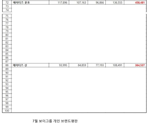 2021년 7월 보이그룹 개인 브랜드 평판 산이 첫등장
