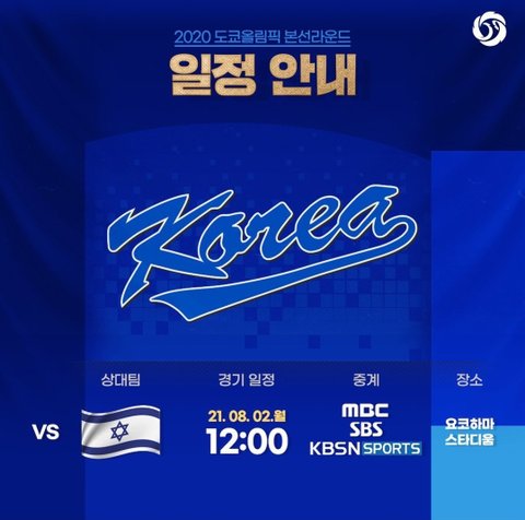 도쿄올림픽 야구 본선 일정 vs 이스라엘