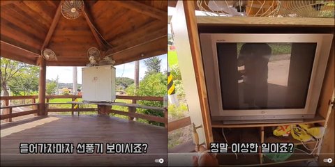 이동네 정자에서는 TV도 볼 수 있고, 선풍기 바람도 쐴 수 있고, 고기도 구워 먹고, 냉장고에서 술도 꺼내 마실 수 있음. 겨울에는 히터도 가능함.