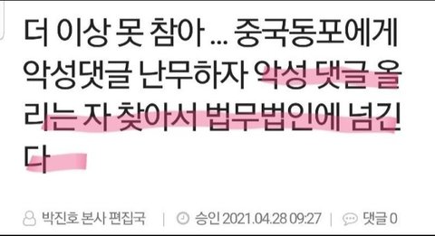 조선족들이 즈그들 욕하면 고소 고발 한댄다.ㅋㅋㅋㄱㅋㅋㅋㅋ 걍 웃겨서 말 이 안나옴