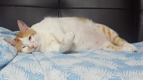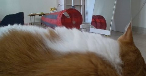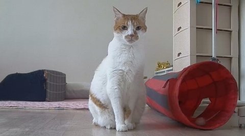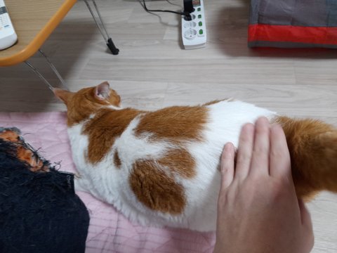 엉덩이 때리는 집사가 마음에 안든지 쳐다봄.