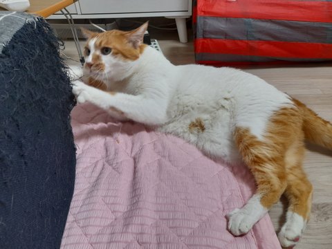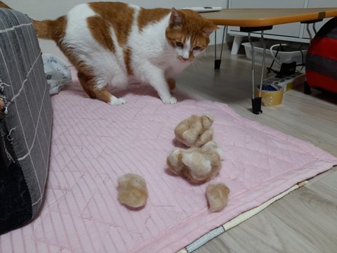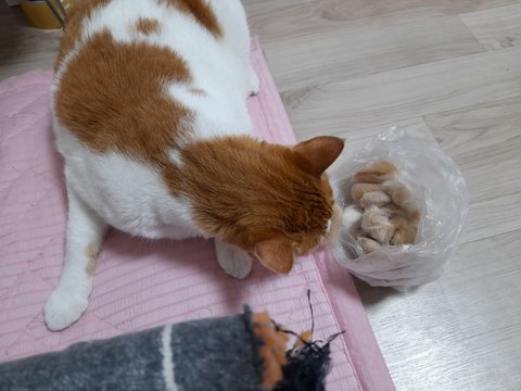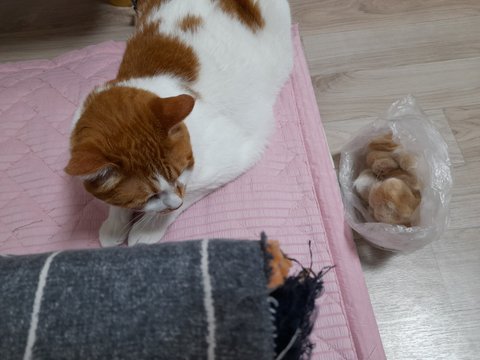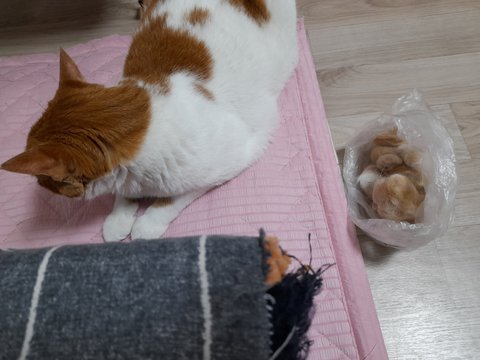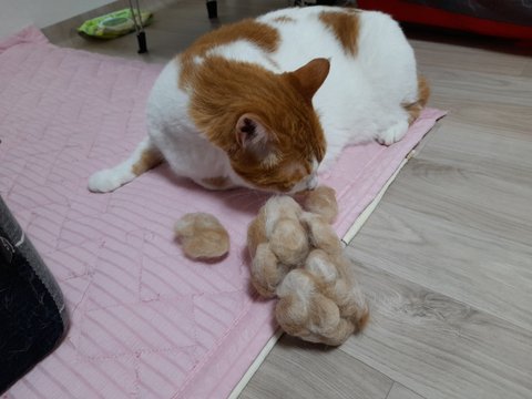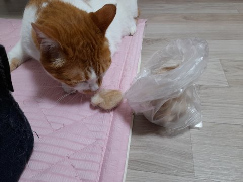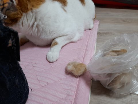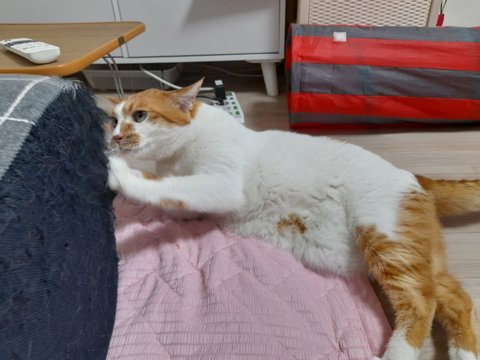 본인 엉덩이 떄리는 집사가 마음에 안들었는지 화풀이하고 있음.