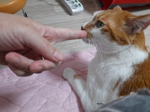 집사랑 이티 놀이하자고 손가락 내밀었는데 끝까지 협조를 안하는 도칠.