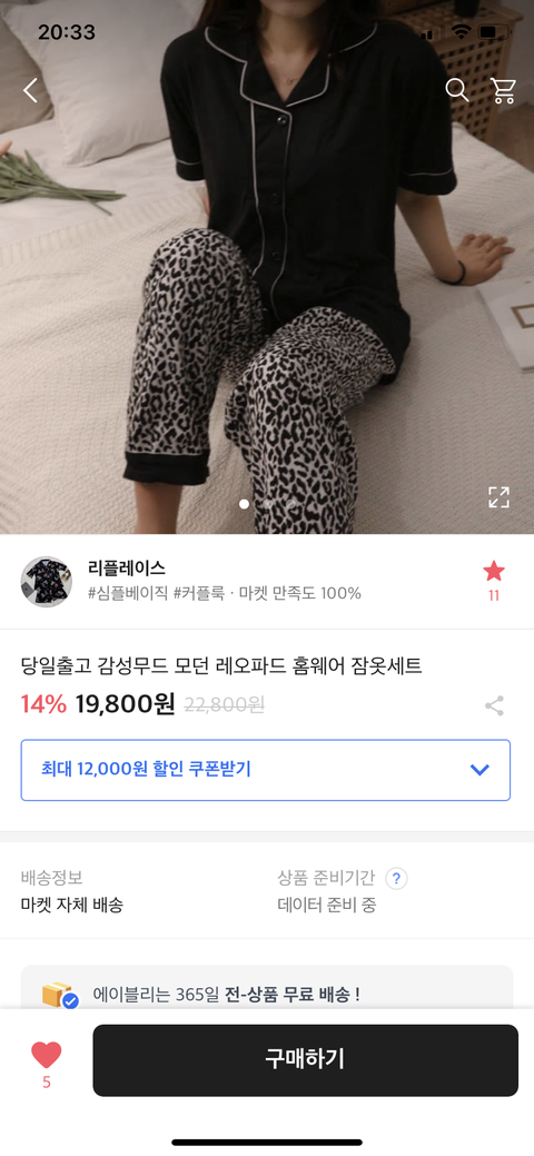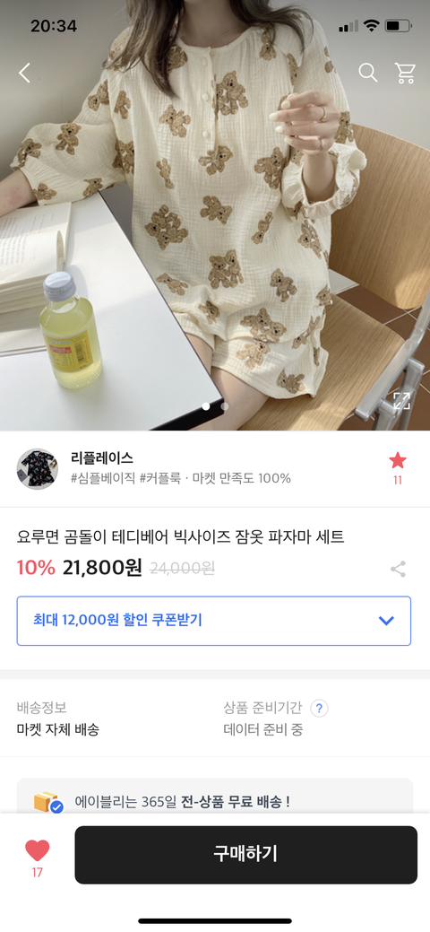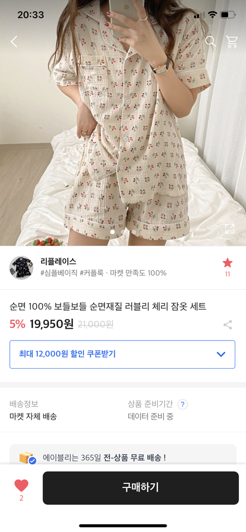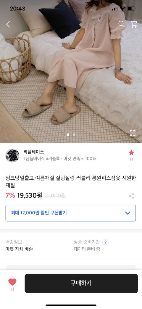 애들아 집에서 늘어진 반팔만 입다가 예쁜 잠옷 입고 있으면 괜히 기분좋은거 알지.. 아직 잠옷 따로 없는 사람들 진짜 추천이야