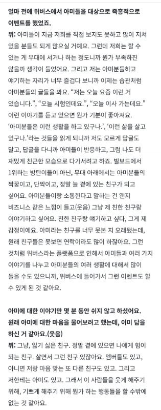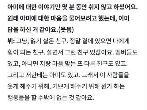 인터뷰 느긋하게하다가 아미 이 얘기 나오니까 몇분동안 쉬지않고 얘기했다더라