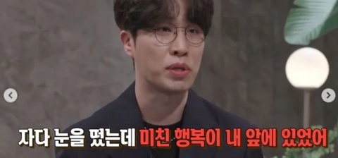"자다 눈을 떴는데 미친 행복이 내 앞에 있어"