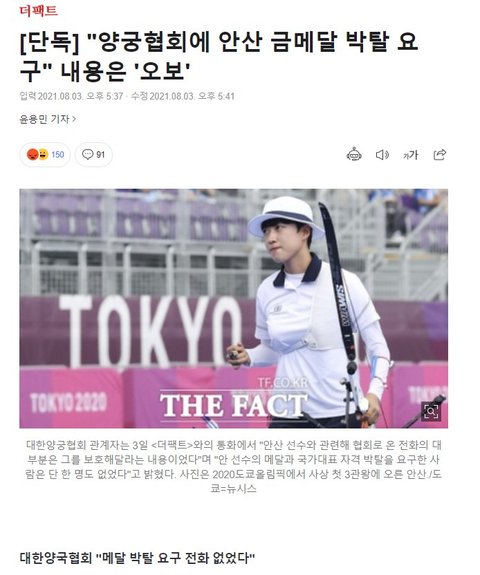 양궁협회 "안산 금메달 박탈 요구" 관련 입장 떳다!