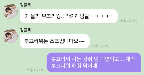 정우 따라 나도 막이래 씀 평소 말투랑 개다르다 ^-^ 나만 이런거 아니지 김정우한테만 말랑한 말투 쓴다구