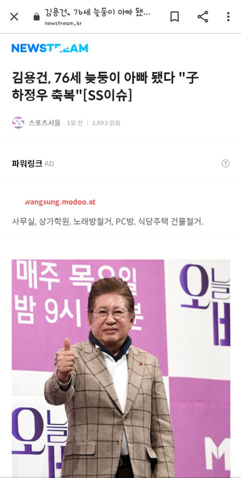 김용건 76살에 애생겨서 하정우 동생 생겼대