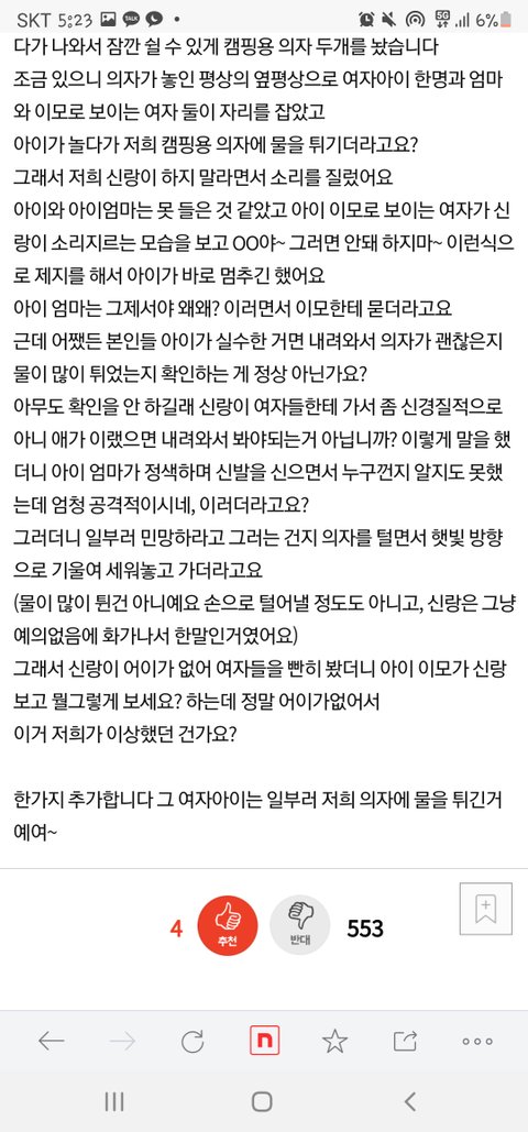 아니 애초에 수영하다 잠시 쉬게 둔거라매.. 그럼 어차피 물 묻는거 아니야? 어차피 젖을거에 물 좀 튀었다고 왜 ㅈㄹ이야.. 걍 여자둘에 애하나있으니 만만해서 시비걸고싶었나봐