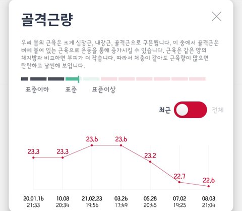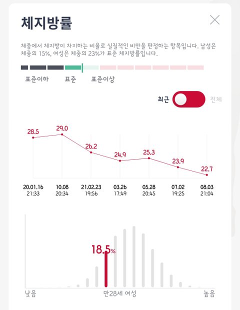 근육량도 조금 잃었지만ㅠㅠ 그래도 지방 빠진거에 비하면 많이 빠진 수준은 아니라서..나름 합리화 했어요!ㅋㅋㅋ