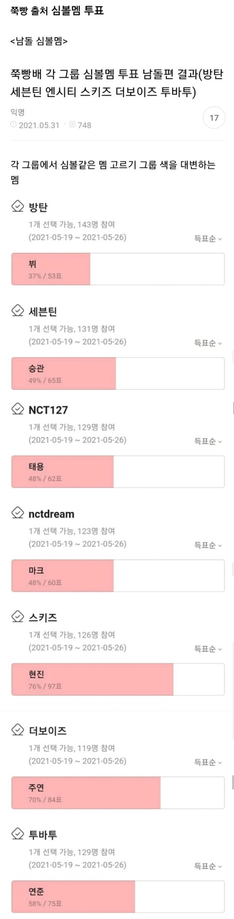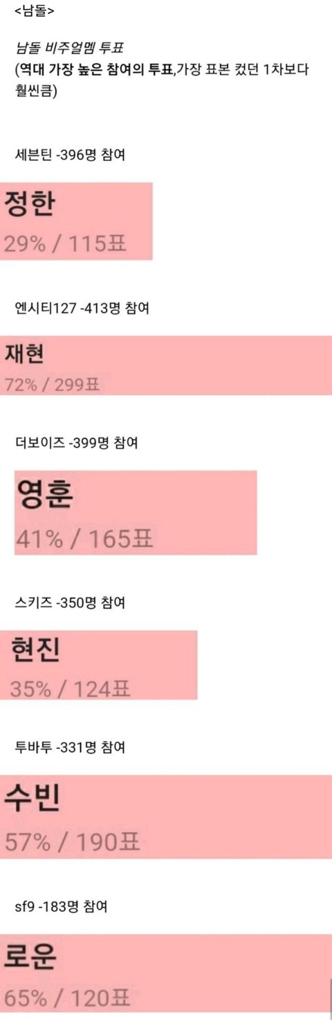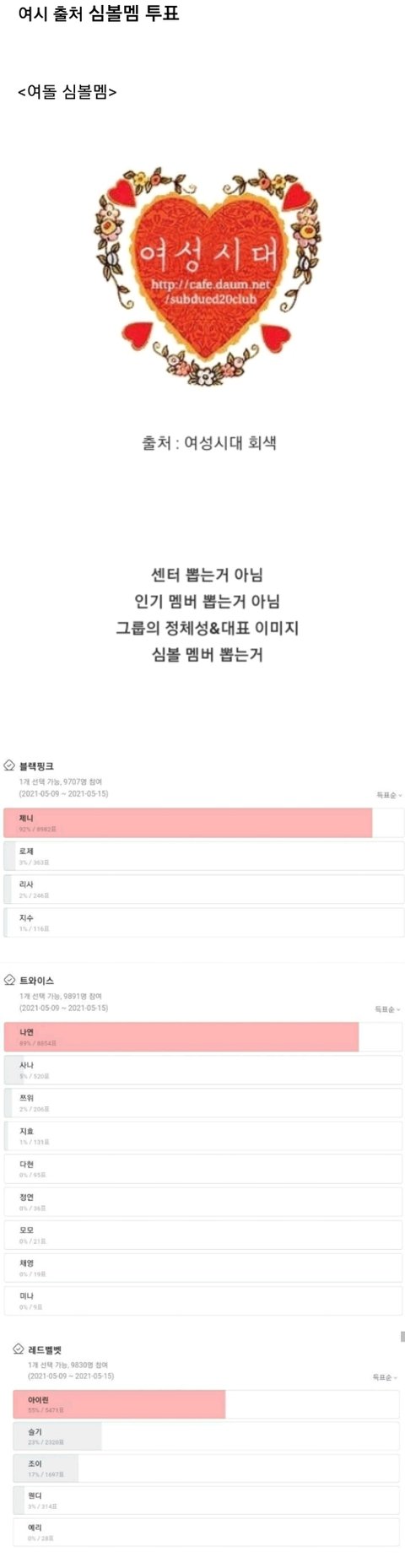 쭉빵 여돌 비주얼 투표(표본 너무 작아서 빼려다 겸사겸사 넣음)