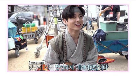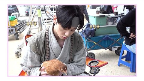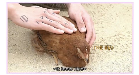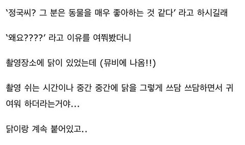 정국이 별안간 누워있던 닭 반려동물마냥 쓰담쓰담 하더니