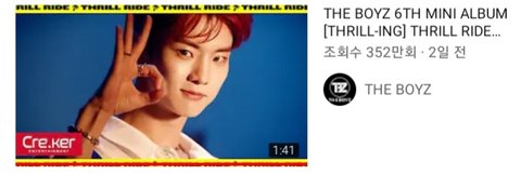브레이킹 뉴스 120만회 스릴라이드 350만회... 심지어 이 속도면 백퍼 오늘내로 360만 넘음ㅋㅋㅋㅋㅋ 이번 컴백 대박난다 진짜 어그로들 잘 무시하고 아디 보내고 앨범 사고 사전투표도 열심히 준비하자ㅠㅜㅠㅠㅜㅜ