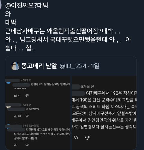 남여 통틀어 배구 선수들 중 연봉 탑이 김연경인데ㅋㅋㅋㅋㅋㅋㅋㅋㅋㅋ 배구계의 메시란 말도 김연경한테는 실례라는 말고 있는데 유튭 보면 참 답없음