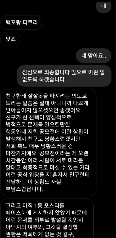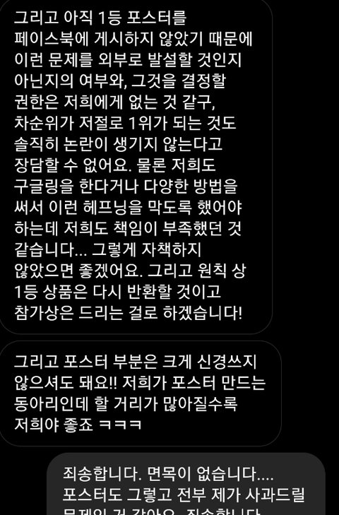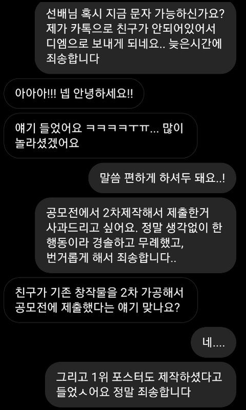 ㅋㅋㅋㅋ 철없다 뭐가 자랑이라고 카톡까지 다 캡쳐해서 올리냐; 좋게 넘어갔으면 감사한줄 알고 반성이나 하지ㅋㅋㅋ... 정신 좀 차려라 니는 장난이었겠지만 상대방 입장에선 기만이고 일에 차질 ㅈㄴ 생기는 건데ㅋㅋㅋㅋ 상대방은 너 생각해서 좋게 말해주고 좋게 넘어가줬는데 넌 끝까지 재미 볼라고 하네ㅋㅋㅋ 이번 기회에 저작권에 대해 생각 좀 해봐라..^^...