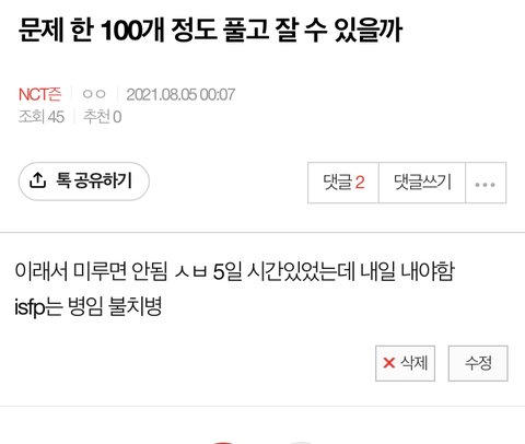 점점 수면 시간이 늦춰짐ㅋㅋㅋㅋ 아 2시쯤에 잘 수 있겟다 아 3시쯤엔 잘수있을듯 4시에는 자겠지 5시까지만 할수있게해주세요