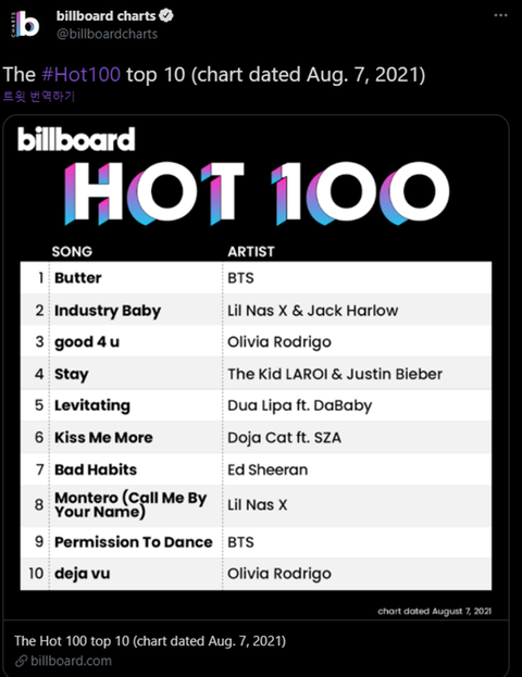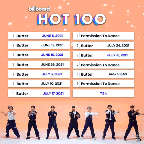 + 그리고 현재(9주 1위) 방탄 Butter와 타이기록을 이루고 있는 유명곡들