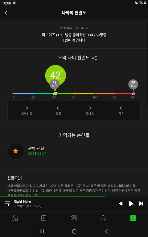나 분명 어제부터 드링킷 리스트로 스밍 돌리기 시작했고 좋아요도 다 눌렀고 많이 들은 노래에도 그 14곡이 있는데 왜 온도에는 반영이 하나도 안됐지...?