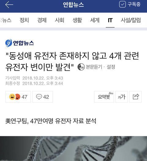 __현대과학에서 밝혀진 바, 유전자도 없고 조현병같은 비이성적 유전자만 발견되었대 이게 정신질환이랑 연결되는거지 정상은 아니잖아 최소 과학은 거짓말 안해