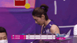 코트 체인지 할 때 경기 중 다친 외국인 선수 걱정하는 김연경