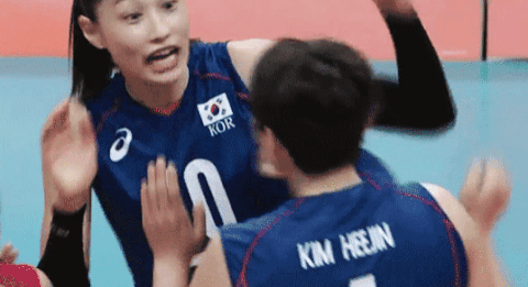 후배 득점해서 칭찬해주는 김연경