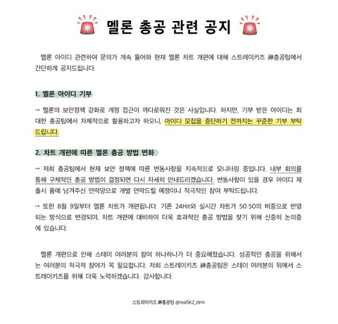 멜론 아이디 관련 신총공팀 입장 나왔어