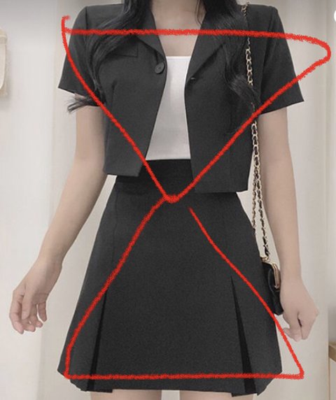 하의는 하이웨스트 상의는 짧게 그리고 전체적으로 각이 져있는 느낌이 좋아