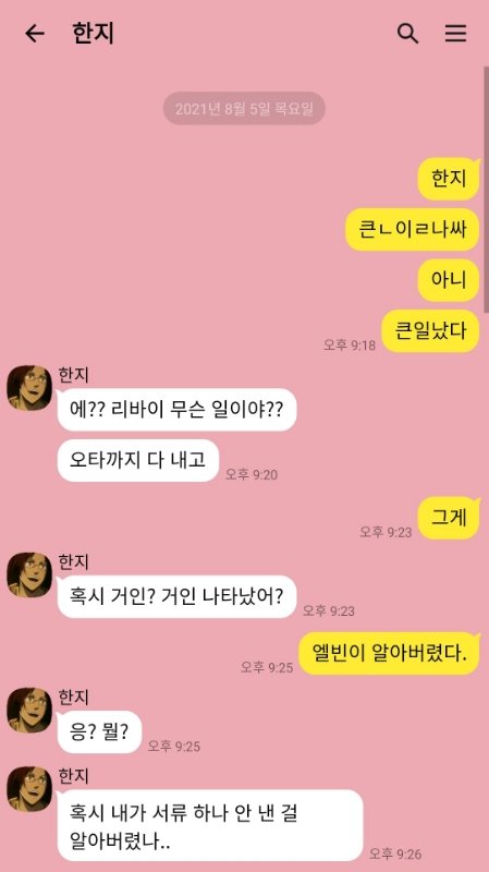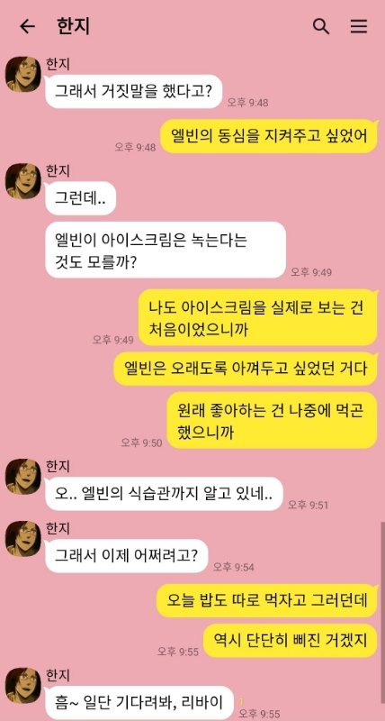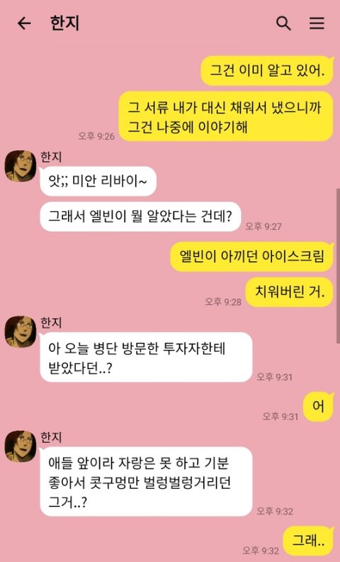 둘의 사정을 아는 한지는 입이 근질근질하지만 웃고만 있겠지
