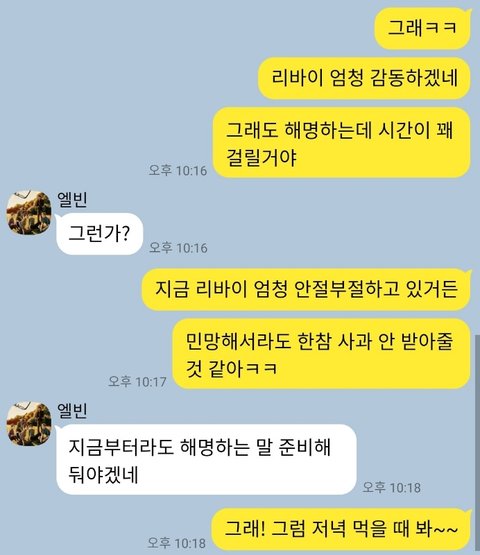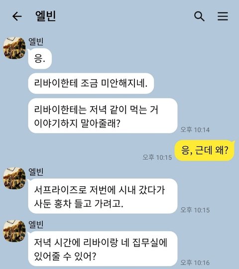 이미 용서는 다 했지만 쩔쩔매는 엘빈이 귀여워서 다음 날까지 사과는 받아주지 않은 리바이와