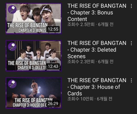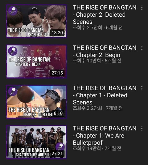 혹시 아는지 모르겠는데 유튭에 팬이 만든 다큐같은게 있어! 방탄 데뷔초부터 있었던 일들을 담은거야 나 같은 늦덕한테 진짜 도움많이 됐었거든 그래서 추천해주고 싶어!! 방밤 예능 뉴스 기사 인터뷰 음방 등등 너무 편집을 잘해주셨어! 방탄이들의 성장 과정들을 담은 다큐 이외에도 연예계의 문제점?이라해야되나 팀워크 건강문제 이런 소재의 이야기나 조금이지만 방탄이 아닌 다른 아이돌들의 인터뷰나 자료,기사들이 조금씩 나와서 더 좋은거 같아