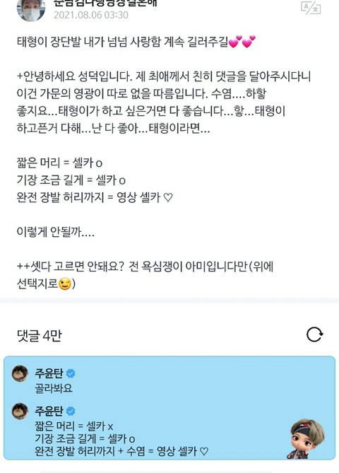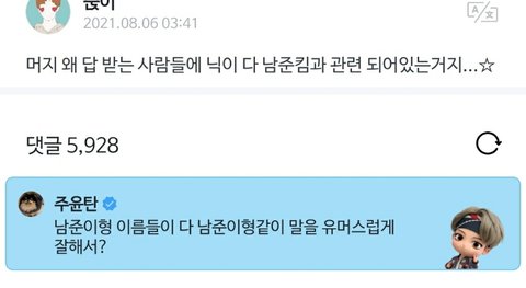 나도 주니 관련 닉으로 바꾸고 글짱이 되야지 꼭 글짱이 되어서 태형이한테 댓받을거야