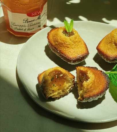 코코넛 베이스에 패션후르츠 파인애플 잼과 민트를 넣어준 마들렌