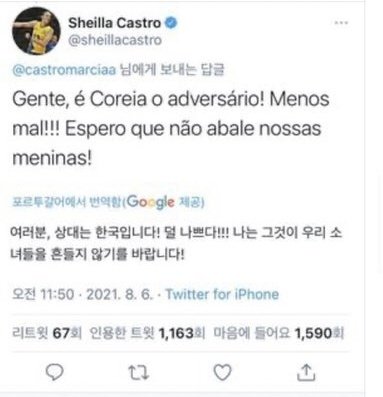 두번째사진은 브라질 동료 선수가 쓴 트윗