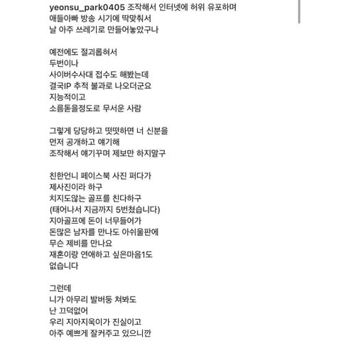 김용호가 꼴에 애아빠라고 아이엄마가 나대는거(조건만남, 스폰, 제비 만나는거) 진짜 싫어함. 박연수랑 오또맘이 뒤에서 할거 다하면서 아이가지고 감성팔이 한다고 엄청 저격했음. 근데 김용호도 그리 깨끗한 사람은 아니라는거....