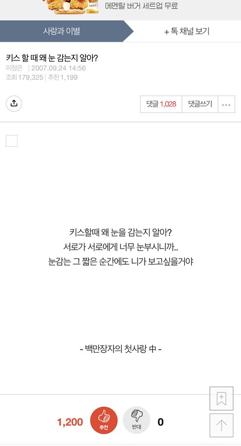 판에 첫키스 서치해서 인기순으로 보다가