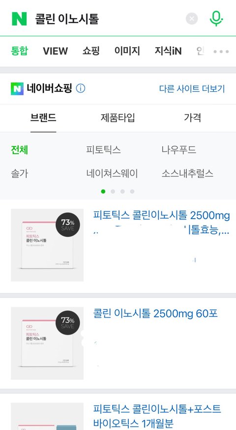 네이버에 “ 콜린 이노시톨” 검색하니깐 한 업체 제품이 도배가 되어있음 ..