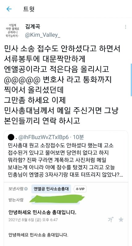 변호사랑 통화하면 바로 소송 접수인줄 아는데..뭐하는 사람이야 진짜