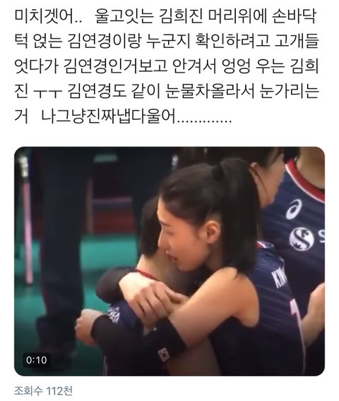 만약에 기면경 선수가 개족같은 주장이었으면 얼굴 보자마자 눈물 뚝 그쳤을텐데 기믜진 선수가 엄청 믿고 의지했다는 게 느껴짐 얼굴 보자마자 엉엉 우는게 ㅜㅜ