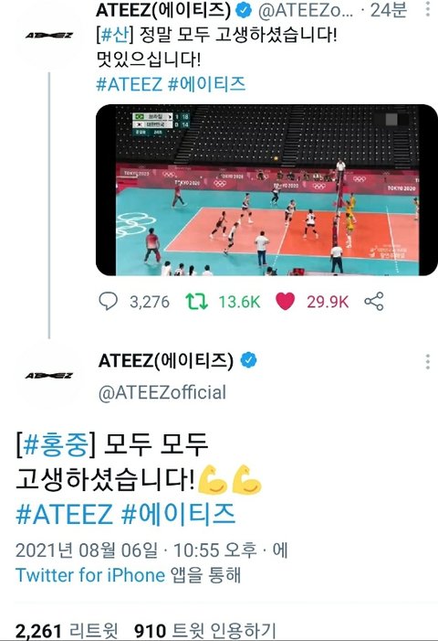 사니가 배구 수고했다 멋있다 글 남기니까 ㅂㄹㅈ 무개념들이 인알이랑 멘션으로 싸불하려고하니까 한국인들이랑 티니들이 열심히 좋은말 많이 써주고있는데 홍중이도 같이 타래로 글 남김ㅠㅠ 우리 캡틴 진짜 짱이당
