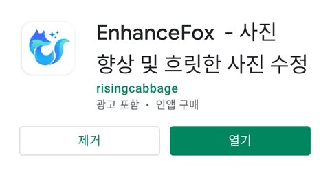 Enhance fox 라는 앱인데 화질 흐린 사진 전체적으로 퀄리티 높여주는 앱이고 굿즈 만들 때나 고화질로 전환할 때 유용함